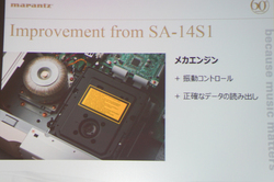 次に、各モデルで個別に実施された特別チューニングについて紹介する。SACDプレーヤー「SA-14S1SE」では、通常モデルと同様に独自のメカエンジン「SACDM-2」が採用されているが、ディスクからのデータ読み取り精度を向上させるために追加の振動対策が実施されている。