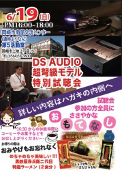 (株)デジタルストリームでは、DS Audioの最高峰・光電型カートリッジDS Master1の発売を記念した試聴会を、6月19日(日)に愛知県岡崎市の岡崎市南部交流センターにて実施する。