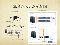 また、100kHzまでフラットに伸びた特性を持つことで定評あるサンケンのCO-100Kを用いたハイトリアL/Rchのマイクと、フロントハイトL/Rchに使用したKM-133Dは、全て客席へ向けてセッティングされている。
