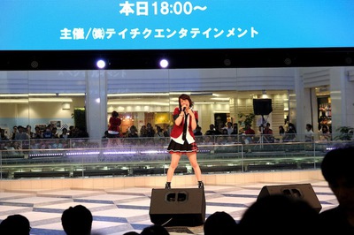 イベントは、いきなり大島はるなによる「ハイスペックDays」の熱唱でスタートした。ハイテンションなロックチューンで、噴水広場周辺に巻き起こる手拍子。このイベントを楽しみにしていた“大島組”だけでなく、たまたま訪れていたお客さんも足を止めて、笑顔でステージを眺め始める姿が多く見られた。