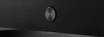 筐体の前面中央に配置されたフロントボタンは、こちらも本機のみの特別仕様として、精密なスピン表面処理加工を施している。ボタン下にあるランプは、ホワイトに加えてブルーも選択可能となっている。