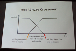 同氏はオリジナル信号と、クロスオーバーネットワーク、ユニットをそれぞれ経た信号との差を示し、その問題について紹介。