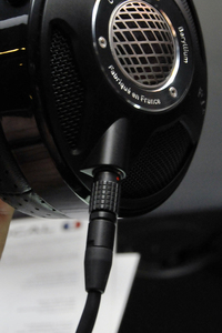 ケーブルは、ロック機構を備えるφ9.5mmレモ端子(ヘッドホン側)とノイトリック製のφ6.3mmステレオ標準端子(アンプ側)による着脱式ケーブルを採用しており、その長さは4.0m。内部線材はOFCで、送り出し機器からの信号を極限までピュアな形で伝送すべく、ケーブルそのもののインピーダンスは1mあたり90mΩ以下となるように設計された。また、70pF未満という極めて低いクロストーク特性を獲得するため、内部は完全に左右対称となる構造を採用している。