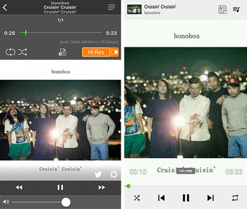 「ハイレゾプレイバック」はiOS版とAndroid版の両方で提供開始しており、ともに対応フォーマットはALAC、FLAC、WAV、AAC、対応サンプルレートは最大48kHz/24bitまで。DSDファイルの再生には非対応となる。