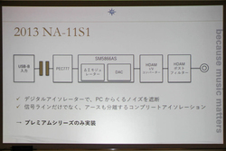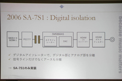 デジタル・アイソレーション回路は2006年発売のSACDプレーヤー「SA-7S1」で初採用された。SA-7S1は外部入力がないのでDACチップの直前にアイソレーション回路を設置して、アナログ段へノイズを流入させないという手法を取った。その後、NA-11S1などUSB-DAC機能を備えたプレーヤーでは、PCからのノイズ流入を防ぐためにUSB-B入力に対してアイソレーション回路が配置された。