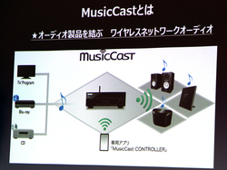 MusicCastは、対応するヤマハ製品同士を連携させ、ネットワーク接続による音楽ファイル伝送/再生が行える機能。PCやNASなどのネットワーク上にあるサーバー機器や、スマホ/タブレットなどモバイル機器内の音源を、対応するヤマハ製アンプやスピーカーからワイヤレスで再生できる。家庭内にある複数の部屋をまたがって、マルチルーム再生できることが特徴だ。