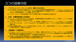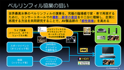 次に「映像・音響関連機器の技術開発」について。これはベルリン・フィルやベルリンフィル・メディアのエンジニアの意見を取り入れ、パナソニックおよびテクニクスの映像・音響関連機器の技術/製品開発に活かす狙いだ。