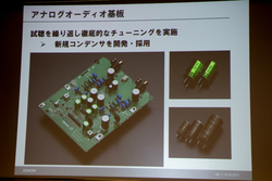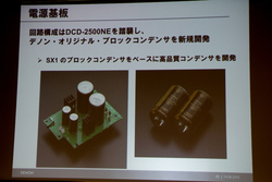 各所にDCD-SX11やDCD-2500NEと同様の音質パーツを採用したことも特徴だ。デジタル基板については、DCD-2500NEのデジタル基板をベースに、再度の音質検討を実施、高音質コンデンサーを随所に採用したという。