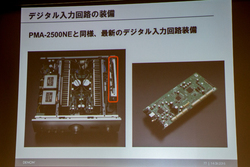 本機から搭載されたUSB入力をはじめとするデジタル回路については、PMA-2500NEと同規模という最新のデジタル入力回路を搭載。ハイレゾ再生についても前述のように、11.2MHz DSDなど現時点の主要フォーマットにフル対応している。光/同軸デジタル入力は192kHz/24bitまでに対応。