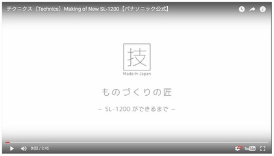 パナソニック(株)は、Technics(テクニクス)ブランドの特設サイトにて、ターンテーブル「SL-1200G」の製造の課程がわかる公式動画「ものづくりの匠 − SL-1200ができるまで −」を公開している。動画が掲載されているページはこちら。