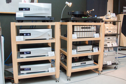 写真のBardoの下に敷かれているのは、HRS(HARMONIC RESOLUTION SYSTEM)のオーディオボード「R3X」。同社は“アイソレーションベース”と形容している。価格は201,000円(税抜)。