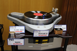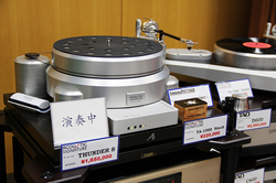 ブースの試聴システムには、仏FOCALのスピーカー“SOPRA”シリーズの「No.1(価格:1,600,000円/ペア・税抜)」、「No.2(価格:2,600,000円/ペア・税抜)」、「No.3(価格:3,600,000円/ペア・税抜)」を使用。独Acoustic Signatureのターンテーブル「NOVAM B」「THUNDER S」を用意を組み合わせて、アナログ再生の試聴デモを実施している。