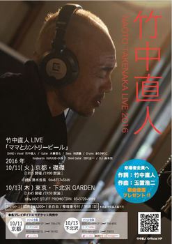日本を代表する演技派俳優であり映画、ドラマをはじめとして、様々なシーンで活躍を続ける竹中直人さん。季刊・analog誌などでもお馴染みの竹中さんが、2016年10月に京都と下北沢でワンマンライヴ『ママとカントリービール』を開催する。