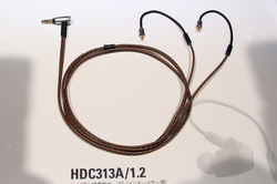 HDC313A/1.2のケーブルは、ツイストの構造を採用。イヤホン側はフレキシブルワイヤーにより、耳かけにも対応する。シースには柔軟性があり取り回しやすい透過性PVCを採用した