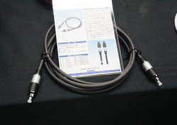 サエクコマースは、この9月に発売した新製品の光デジタルケーブル「OPC-X11」や、すでに定番となっている電源ケーブル「PL-8000」「PL-7000」「PL-5800」などを中心に展示を行った。OPC-X11は純石英を採用したハイエンド光ケーブル。ロングセラーモデル「OPC-X1」の後継機となる。