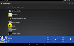 HAPのメディアサーバー機能を利用して、他の再生機器(クライアント)からHAP内のHDDやUSB-HDD内の音楽ファイルを再生する際、HAP側は、HAPのサーバーソフトがHAP内のデータベースで構築した情報を開示。このため、クライアント側が、HAP側が開示したデータを受けとって楽曲の情報を表示する機能を備えていれば、HAP側と同様の情報が表示できる。