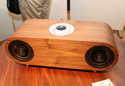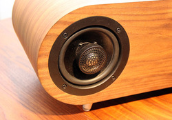 本機のコンセプトは「木」と「布」。一体型の筐体はMDF+ウォールナット突き板仕上げのキャビネットを採用。布製のフロントグリルは着脱でき、季節や好みにあわせて着せ替えることもできる。