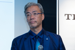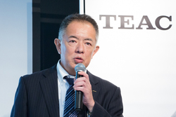 発表会の冒頭では、ティアック株式会社 代表取締役社長の英 裕治氏が登壇。ティアックの取り組みと新製品にかける意気込みについて語った。