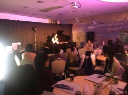 最後には小川理子氏によるジャズスタンダードナンバーのソロピアノ演奏と、弾き語りがたっぷり行われた。
