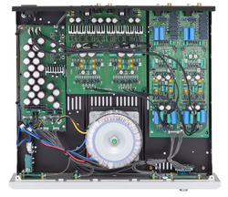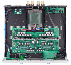 信号系は、上位機種のプリメインアンプ「A-1」と同様に無接点化を採用。また、トランス直下にスパイクピンを設けることで、有害なトランス振動を直接シャーシの外に逃がすとしている。