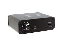 出力はRCAが1系統。ロータリーエンコーダ電子ボリュームにより、プリアンプ出力調整および本体前面の3.5mmステレオミニ・ヘッドホン端子のボリューム調整が可能となっている。
