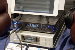 OPPO Digital Japanは、ESSの旗艦DACチップ「ES9038PRO」を搭載したUSB-DAC/ネットワークプレーヤー「Sonica DAC」について、初の動体展示を実施。会場では同社ヘッドホンアンプ「HA-1」と組み合わされ、その音をヘッドホンで確認することができた。なお発売は年内を予定しており、予価はオープン(実売95,000円前後)とのこと。なお、近々正式なアナウンスがある模様だ。