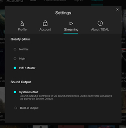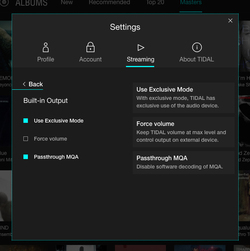 TIDALのPC用アプリの「Setting」の項目からは、「Passthrough MQA」という項目が用意されており、このソフトウェア上でのMQAデコードをオフにして、組み合わせたMQA対応DACの側でデコードを行うこともできるようになっている。