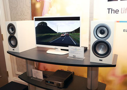 一方の「Uni-Fi SLIM LINE」は、25mmシルククロスドーム・トゥイーターと100mmアルミ・ミッドレンジによる同軸ユニット「Uni-Fi COAX」を採用したシリーズ。ブースでは「BS U5 SLIM」をテレビの脇に置くというスタイルを提案していた。