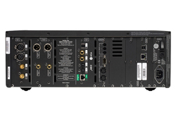 ケンブリッジの自社工場で、8層高密度基板から組立までハンドメイドで生産しているとのこと。本体色はブラックとメリディアン・シルバーの2色だが、約270色から選べるカスタムカラーオーダーも別注で行っている。筐体フロントには低ノイズに配慮した液晶ディスプレイを用意。外形寸法は481W×175H×411Dmm、質量16kg。大型リモコンMSR+も付属するほか、外部コントロールにも対応するRS232端子やトリガー出力3系統も備えている。