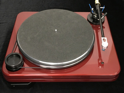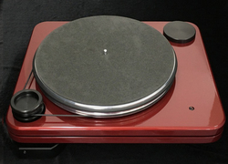 プラッターは、厚さ29mm、重さ6kgの削り出し高剛性アルミニウム製。プラッターとベルトの接触部にはプーリー位置に沿ったガイド溝を設け、長時間の使用でも安定したなめらかな回転が得られるよう配慮している。50Hz/60Hzの周波数切替は、プーリーの交換で行える。