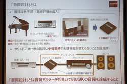 測定数値だけでなく、同社横浜テクノロジーセンター内に用意された専用リスニングルームにて聴感評価による最終チェックを経て音質設計を行っていることもアピールされた。