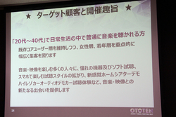 会場を移して展示・イベント内容を一新することで、既存の来場者のコアであるマニア層も維持しつつ、若年層・女性層を重点的に、幅広く顧客層の開拓を推進していく。具体的には「20代〜40代で日常生活の中で普通に音楽を聴かれる方」を特に狙って集客を行っていくという。