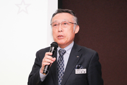 記者発表会の冒頭では、日本オーディオ協会の会長を務める校條亮治氏が挨拶。今回のOTOTENのコンセプトについて説明した。