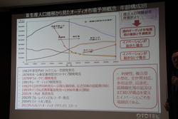 こうしたAV/オーディオ市場の動向を分析しつつ、国内の経済状況に言及。15歳〜64歳の生産年齢が大きく減りつつある中で、国内のオーディオ市場規模は、イノベーションを起こさない限り、このまま大きく減少していくと懸念を示した。