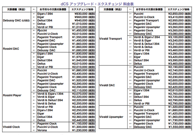 (株)太陽インターナショナルは、同社が取り扱うdCSの製品において、旧モデルと最新モデルとを有償交換するサービス「dCS アップグレード・エクスチェンジ」の受付を、3月1日から6月29日の期間限定で実施する。