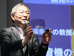 サウンドファンは、平均年齢56歳、70代のベテラン経営陣も活躍する下町シニアベンチャー企業。日本人の約9人に1人が毎日の暮らしの中で“聞こえにくい”という問題を抱えている。そんな難聴者から健聴者まで、次世代へ多くの人に今よりも聞こえやすい環境を提供する“音のバリアフリー”を実現するという「ミライスピーカー」(関連ニュース)の開発に心血を注いでいる。