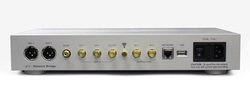 デジタル入力にはLAN(1Gb/s)を1系統、USB Type-Aを1系統装備。AirPlayにも対応。USB-A端子に接続した外付けストーレージに保存した音源の再生も可能で、この際はアシンクロナスモードで動作する。デジタル出力はAES/EBUを2系統、RCA同軸を1系統、BNCを2系統装備する。