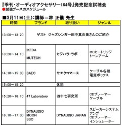 3月11日(土)に、好評発売中の最新刊『季刊・オーディオアクセサリー164号』の発売記念イベントを開催。今回はその試聴会のタイムテーブルを発表します。