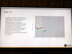スチュワート氏は「神経工学では、人間の聴覚は周波数より時間にシビアであることが分かっており、MQAはこの考え方を採り入れている」とコメント。「サンプリングレートを上げれば音質も上がるが、それによる音質向上の幅は(サンプリングレートの上がり幅と)比例するほどの大きさではない」とし、一般的なハイレゾとMQAとの考え方の違いを説明した。