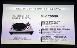 アナログプレーヤー「SL-1200GR」は、アナログプレーヤー「SL-1200」シリーズのエントリーモデルという位置づけ。価格は148,000円(税抜)で、日本では5月19日に発売する。