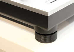 筐体表面のアルミダイキャストシャーシにはマット塗装を施した。またインシュレーターを樹脂製として、これもコストダウンに寄与している。