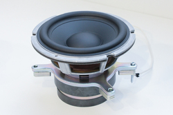 ウーファーは160mm径ユニットを2基搭載。新同軸ユニットと同様、アルマイト処理したアルミ振動板を採用し、音色の統一を図っている。磁気回路はロングストローク設計として、高い駆動力を生み出すダブルマグネット、ロングボイスコイル、銅リングを採用する。これにより大振幅まで低歪みで、レスポンスに優れた低音再生を実現するという。