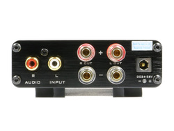 入力端子はRCAを1系統備え、スピーカーターミナルは金メッキ仕様で、バナナプラグ/シングルワイヤリングに対応。外形寸法は96W×33H×168Dmm、質量は530g。