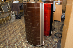 当時のイタリアのハイエンドオーディオは「遅れている」という印象で、そのオーディオショウにおいても収穫はないかと諦めかけていたときに出会ったのが、まだ未完成ながら出展されていたソナス・ファベールのスピーカーだったという。一見変哲のないそのスピーカーの寄せ木の作りに感銘を受け、その場にいたフランコ・セルブリン氏に説明も受けた。そこで完成品を送ってほしいと頼み、届いた「ELECTA AMATOR」は、さらに想像を超えたものだったと野田氏。そこから、今日に至るまでのソナス・ファベールの日本導入が始まったのだという。