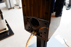三菱電機エンジニアリングはDIATONEブランドとして、「ブックシェルフ型DIATONEスピーカー」を出展。まだ試作機であり、デザインなどについても変更の可能性があるとしているが、試聴イベントは常に満席となっていた。