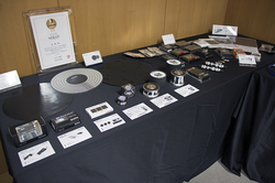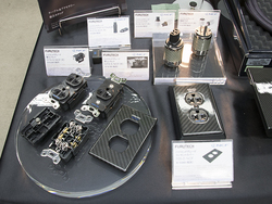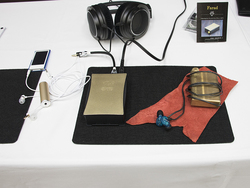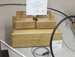 オヤイデ電気のブースでは、ブースでは、オヤイデ電気ブランドのケーブルやアクセサリーと、同社が輸入代理店を務めるエントレック社の仮想アース装置「ミニムス」「シルバーミニムス」を展示している。