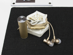 光城精工のブースでは、自社のオーディオブランド“KOJO”のポータブルヘッドホンアンプ「KM01-BRASS」や「PAMP」「FARAD」を出展している。そのほか、本革を使用したハンドメイドの小物入れ「WINDE」の、内側に和紙を使用したバージョンを参考出展。また、インスタグラムの光城精工のアカウントをフォローすると、本革を使用したクリーナークロスがもらえるキャンペーンも行っている。