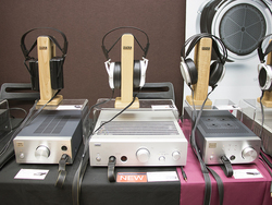 スタックスのブースでは、静電型イヤースピーカー向けドライバーユニットのトップエンドモデル「SRM-T8000」を出展。4月に開催された「ヘッドホン祭2017春」でも、開場するなり試聴を求め詰めかけたユーザーの列ができていた製品だ。従来モデルから端子部を一新するとともに、高品位・高音質なパーツにこだわって開発したという。価格は595,000円(税抜)。発売は6月だが、初回生産分の50台はすでに完売しており、7月に再販する予定とのことだ。