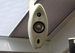 イマーシブオーディオというと10本を超える多チャンネルシステムを連想する人が多いかもしれないが、今回は計6本のスピーカーで4+2チャンネル(フロントx2、リアx2、ハイトx2)のシステムを組んだ例が紹介された。センタースピーカーとサブウーファーはあえて使わず、ハイトスピーカーも前方だけに設置している。