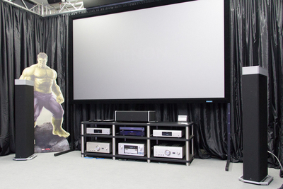 また隣接する大型試聴ブースは、例年ではHi-Fiコンポーネントのデモにあてられていたが、今回は映画館のような座席までを構えたホームシアターを用意。デノンのコンポーネントを中心に、映画館さながらのサウンドが楽しめることをアピールしていた。